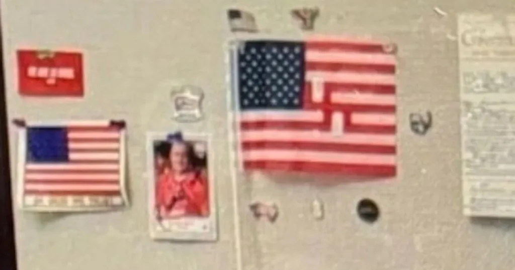 أثار علم أميركي معدل يحمل “رمزاً نازياً” داخل مكتب أحد مساعدي عضو بالكونجرس الأميركي غضباً واسعاً، واستدعى تدخل شرطة الكابيتول للتحقيق، بحسب ما نقلت مجلة “بوليتيكو”.