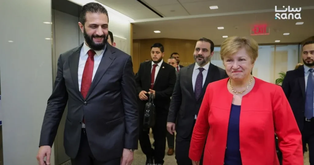 التقى الرئيس السوري أحمد الشرع الأحد الماضي مع مديرة صندوق النقد كريستالينا جورجييفا وتطرقا لسبل التعاون المحتملة. وأفصحت كوزاك أن اللقاء “تركّز على آفاق الاقتصاد السوري والفرص المتاحة، وكيف يمكن للصندوق مواصلة دعم إعادة تأهيل الاقتصاد السوري”.