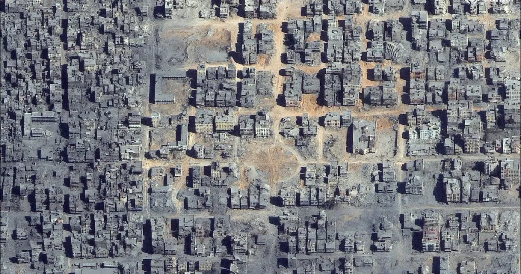 بدأ آلاف الفلسطينيين مسيرة طويلة سيراً على الأقدام من جنوب غزة باتجاه الشمال، وذلك بعد دخول وقف إطلاق النار حيز التنفيذ في القطاع، الجمعة، ليجدوا مدينتهم مدمرة، إذ أظهرت صوراً التقطت بواسطة الأقمار الاصطناعية مساحات شاسعة من الأراضي لا شيء فيها سوى الأنقاض، بدون بنى تحتية ولا كهرباء ولا مياه.