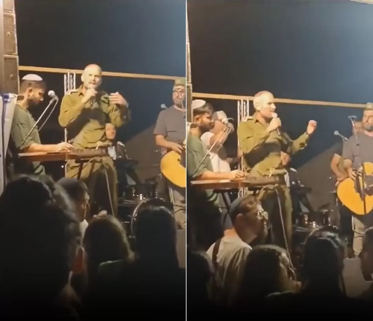 وظهر الضابط بين عدد من الجنود الذين تجمّعوا في حفل موسيقي تم تنظيمه لرفع معنويات جنود الاحتلال المنهارة، قرب الحدود مع غزة، وهو يقول: “أجلس وأتخيل أنه في هذه الأيام لا يوجد قتلى ولا جرحى ولا أسرى.”