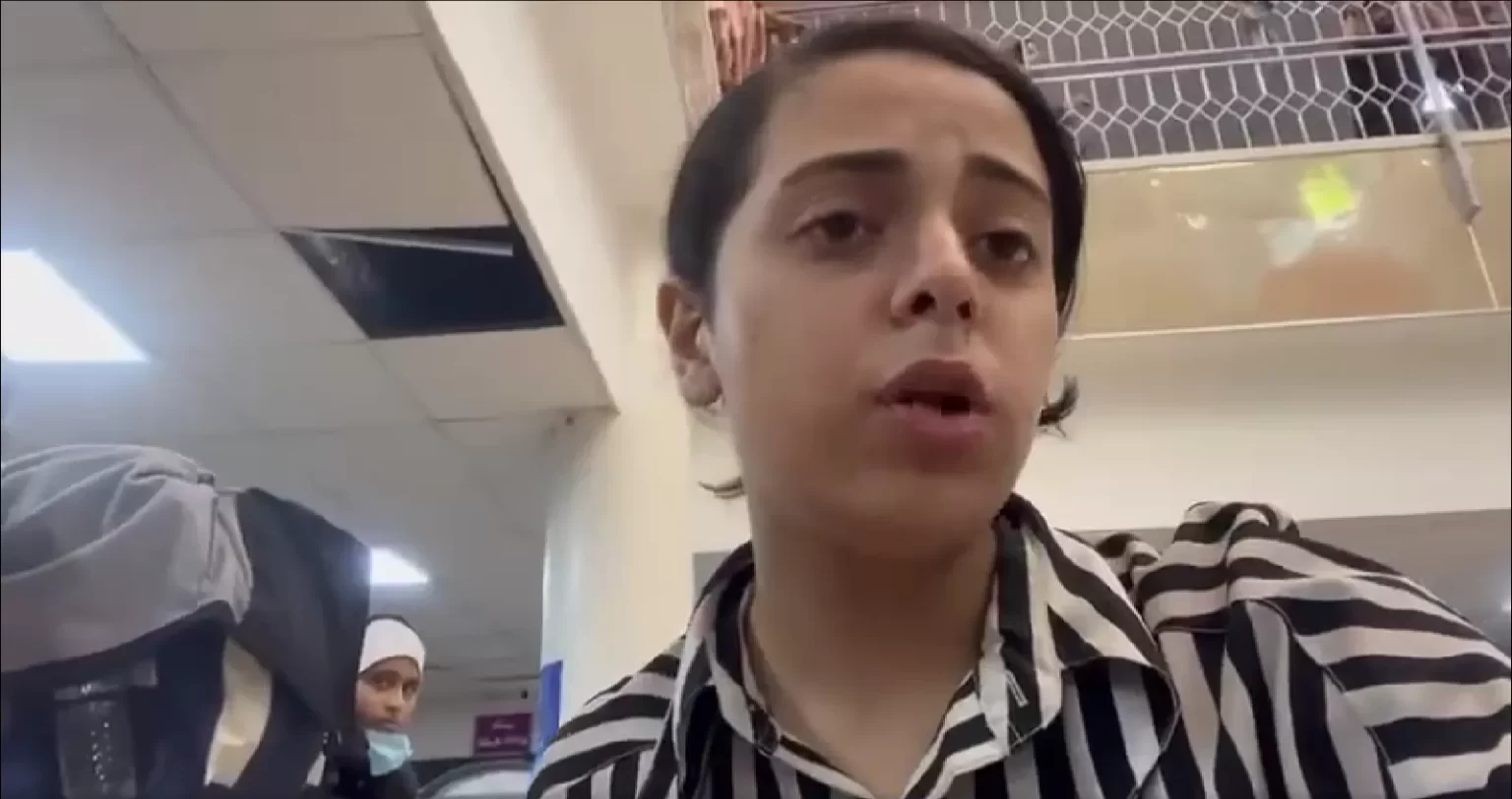 فيما حرّكت الطفلة، الفيديو صوب أحد الشباب الموجودين داخل المستشفى، حيث طالب بحماية دولية في مواجهة آلة القتل الإسرائيلية.