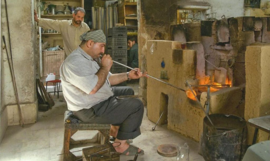 صناعة الزجاج اليدوي بدمشق – 7 أيار 2024 (مشغل الحلاق/فيسبوك)