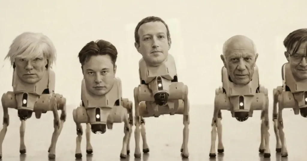 شهد معرض “Art Basel Miami Beach” الذي يختتم أعماله الأحد، بمدينة ميامي الأميركية، عرض عمل فني أثار حالة من الدهشة والصدمة والجدل، بعدما قدّم الفنان الرقمي الأميركي مايك وينكلمان المعروف باسم Beeple، تركيباً فنياً جديداً عبارة عن كلاب روبوتية بوجوه رؤساء شركات التكنولوجيا.