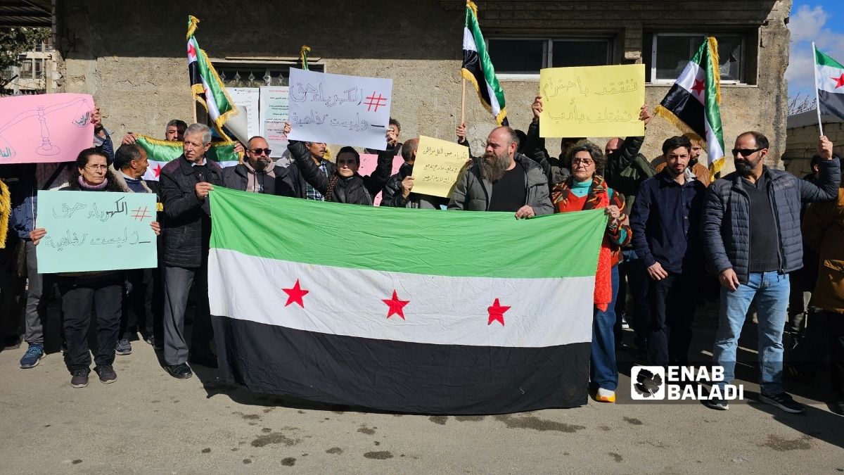 في وقفة احتجاجية ثانية، عبّر المشاركون عن رفضهم لرفع أسعار الكهرباء، معتبرين القرار غير منصف ويجهل الواقع المعيشي لمعظم السوريين، خصوصًا المتقاعدين وذوي الدخل المحدود، ورفعوا شعارات تطالب بعزل وزير الطاقة.