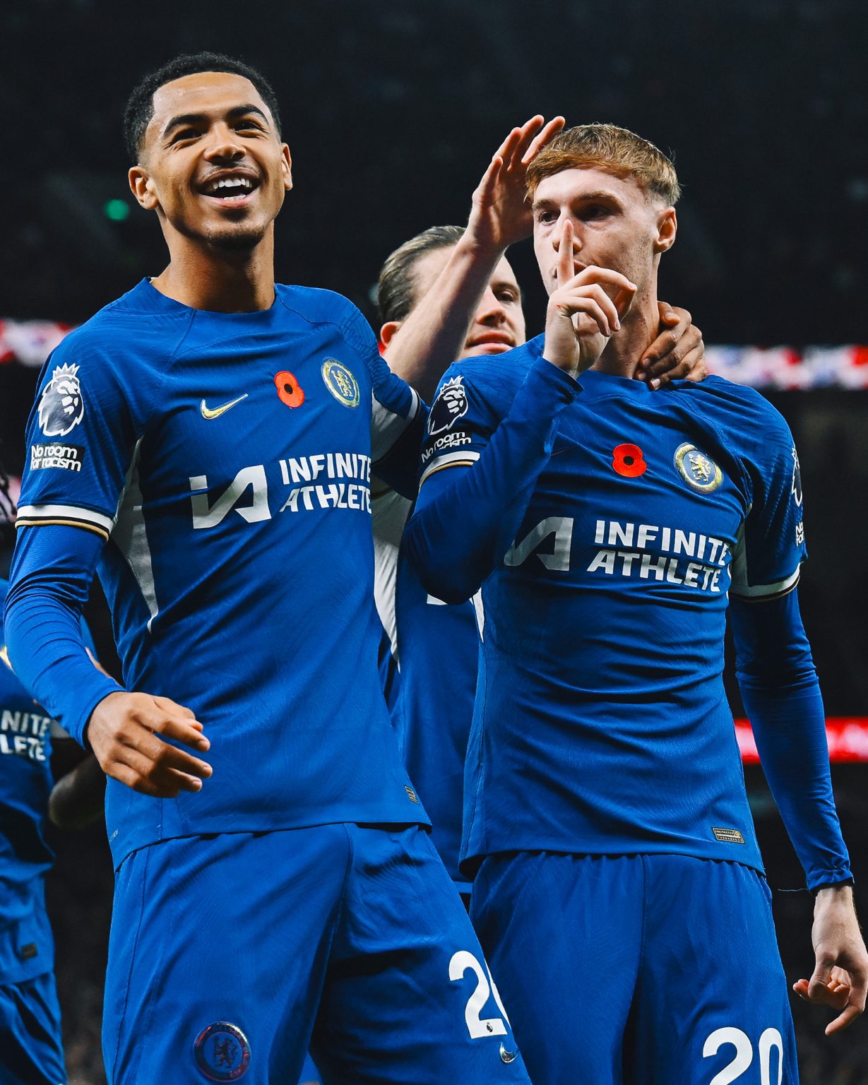 وسجل ثلاثية تشيلسي كول بالمير (35) ونيكولاس جاكسون (75 94 97)، بينما سجل هدف توتنهام الوحيد ديان كولوسيفسكي (6).
