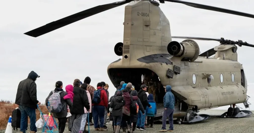 ووفق وكالة “أسوشيتدبرس”، الثلاثاء، اكتملت عملية الإجلاء الجماعي التي نفّذتها طائرات عسكرية لمئات السكان من قرى ألاسكا التي دمّرها الإعصار السابق “هالونج”.
