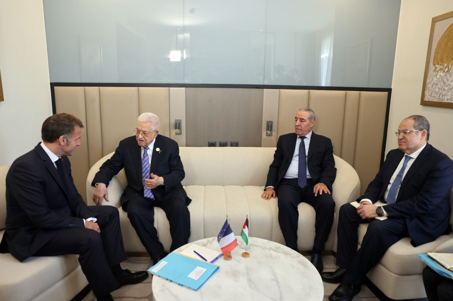وشكر الرئيس، نظيره الفرنسي، على اعتراف بلاده بدولة فلسطين، وترؤسها إلى جانب السعودية المؤتمر الدولي رفيع المستوى لتسوية القضية الفلسطينية، وتنفيذ حلّ الدولتين.