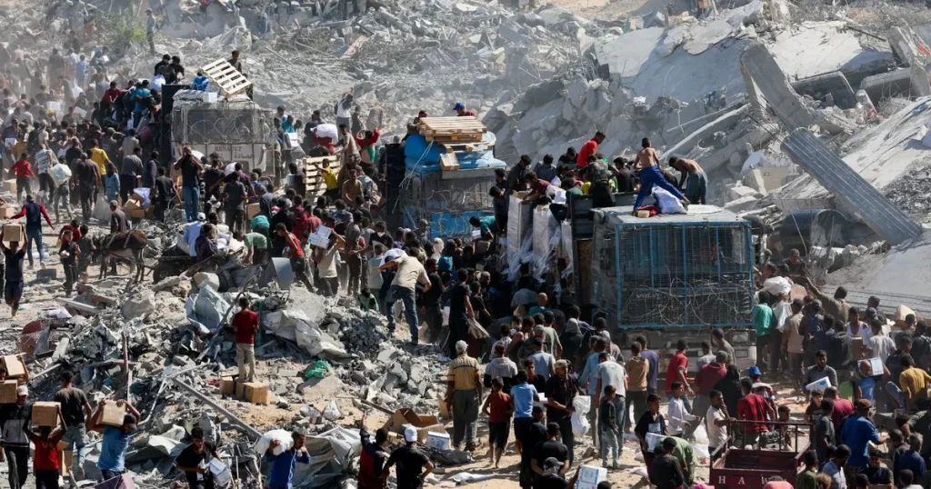 شاركها فيسبوك تويتر لينكدإن بينتيريست تيلقرام البريد الإلكتروني تكشف تقارير أممية استمرار القيود الإسرائيلية على الشاحنات والمعابر، ما يعطل إعادة الإعمار ويؤجج الأزمة الإنسانية في غزة، على الرغم من خطة الرئيس الأميركي دونالد ترمب التي نصت على دخول المساعدات فوراً إلى القطاع.