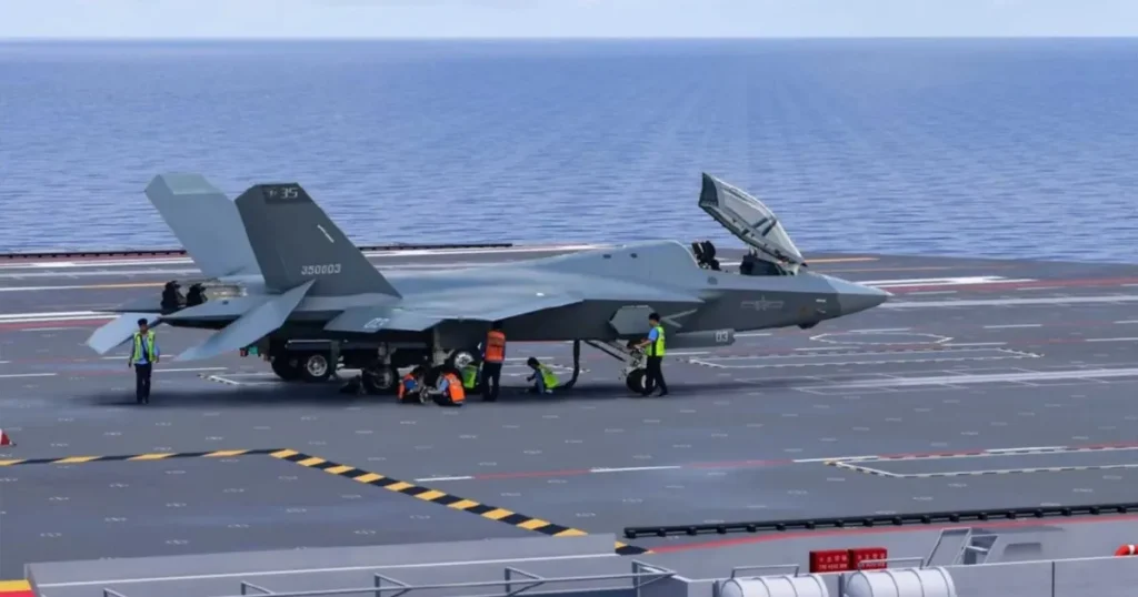 وتُعد J-35 المقاتلة الوحيدة من جيلها التي تُطلق من حاملة طائرات مزودة بنظام إطلاق كهرومغناطيسي.