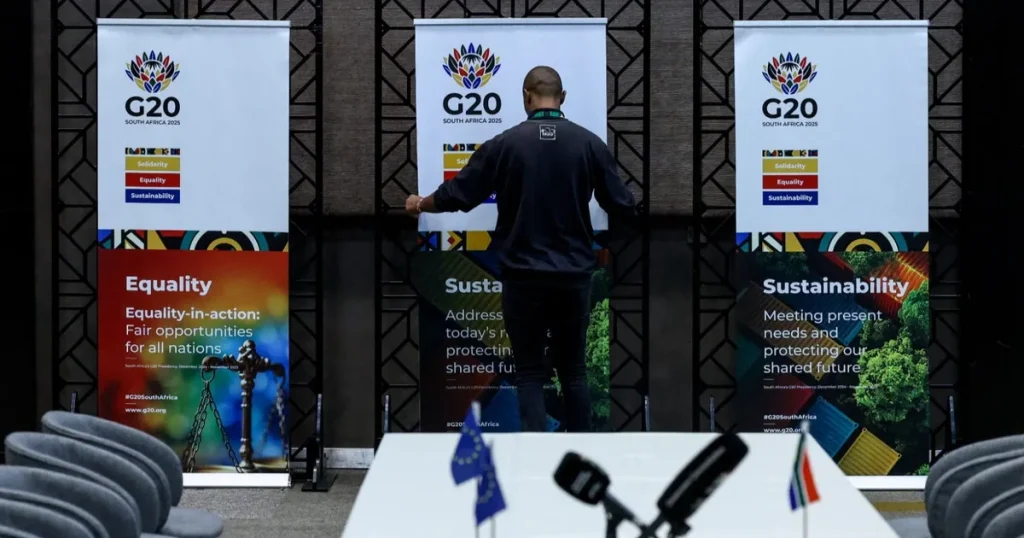 وفي مذكرة دبلوماسية سُلّمت في 15 نوفمبر الجاري، قالت الولايات المتحدة إنها لن تشارك في المحادثات التحضيرية للقمة، ولا في الاجتماع نفسه، كما أنها ستعرقل أي نتيجة تُطرح باعتبارها موقفاً توافقياً للمجموعة، لأن أولويات جنوب إفريقيا “تتعارض مع الرؤى السياسية الأميركية”، وفق نسخة من الوثيقة.