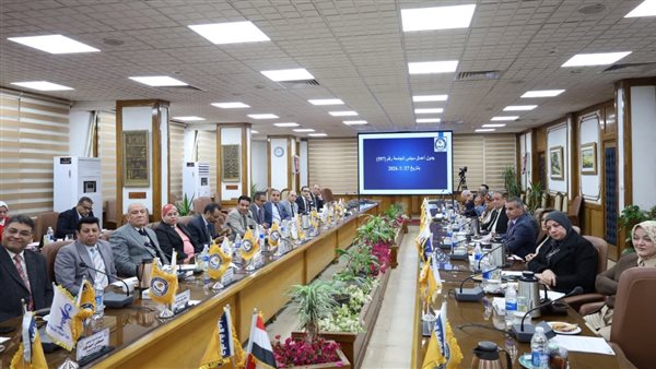جاء ذلك بحضور السادة نواب رئيس الجامعة، الدكتور أيمن حسنين نائب رئيس الجامعة لشئون خدمة المجتمع وتنمية البيئة، والدكتور مصطفي محمود نائب رئيس الجامعة لشئون التعليم والطلاب، والدكتور حسام شوقي نائب رئيس الجامعة لشئون الدراسات العليا والبحوث، وعمداء الكليات، ومدير مركز ضمان الجودة والاعتماد، والمدير التنفيذي للمعلومات، والمستشار القانوني وأمين عام الجامعة أعضاء المجلس، وذلك لمناقشة عددًا من الموضوعات الاستراتيجية المتعلقة بمسيرة الجامعة التعليمية والبحثية والمجتمعية، واستعرض حصاد إنجازاتها خلال عام 2025، وخططها المستقبلية وفي مقدمتها الاستعدادات الشاملة للاحتفال باليوبيل الذهبي للجامعة خلال عام 2026.