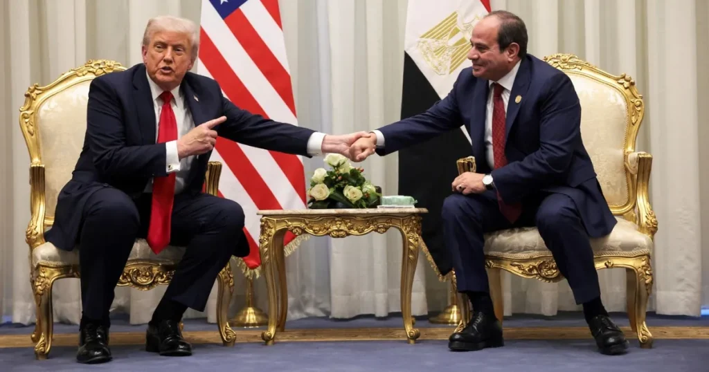 وأعرب السيسي عن تقديره لجهود الرئيس الأميركي دونالد ترمب و”التزامه بوقف الحرب في غزة، وما بذله من تحفيف المعاناة الإنسانية التي أثقلت كاهل الشعب الفلسطيني”.