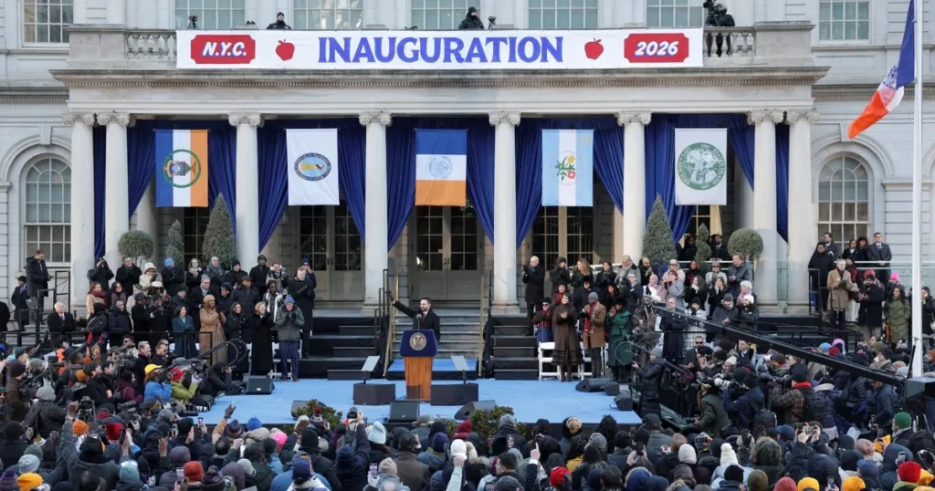 وعلى الرغم من درجات الحرارة المتجمدة، حضر نحو 40 ألف شخص حفلاً في منطقة “كانيون أوف هيروز” في برودواي، للاحتفال بتنصيب ممداني، وهي المرة الأولى التي يتم فيها الاحتفال بتنصيب رئيس بلدية بهذه الطريقة.