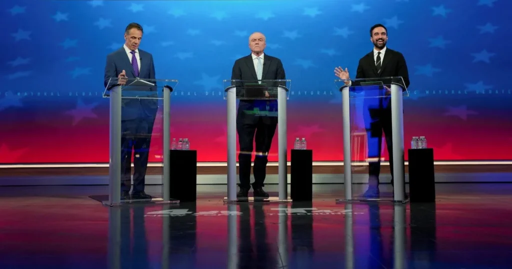جرت أول مناظرة في الانتخابات العامة لمنصب عمدة مدينة نيويورك في أجواء محتدمة، تبادل خلالها المرشحون الثلاثة، زهران ممداني عن الحزب الديمقراطي والحاكم السابق لولاية نيويورك أندرو كومو، والمرشح الجمهوري كورتس سيلوا، الاتهامات حول عدد من القضايا، فيما استحوذت الحرب الإسرائيلية على غزة على جزء كبير من النقاش.
