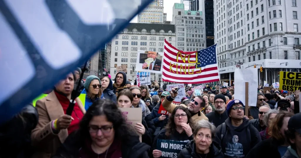 يخطط التحالف التقدمي الذي يقف وراء مظاهرات “لا ملوك” في الولايات المتحدة إلى العودة للشوارع في مارس المقبل، وذلك في الوقت الذي تتصاعد فيه الاحتجاجات ضد الرئيس الأميركي دونالد ترمب، حسبما ذكرت مجلة “تايم”.