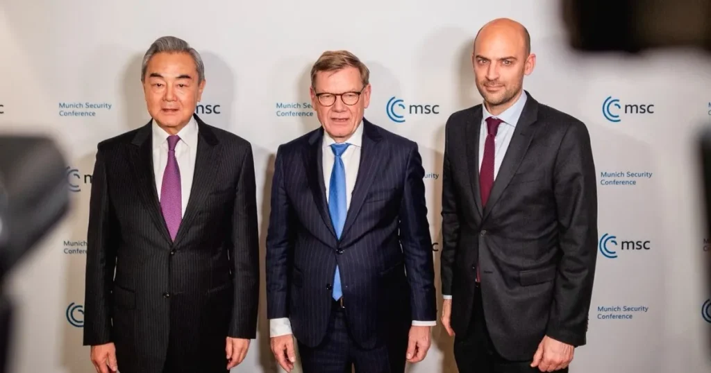 وخلال اجتماع عقده مع نظيريه الألماني يوهان فاديفول والفرنسي جان نويل بارو على هامش مؤتمر ميونيخ للأمن، قال وانج يي إن تنمية الصين تمثل “فرصة لأوروبا”، وإن التحديات التي تواجهها أوروبا لا تنبع من الصين، بحسب ما أوردته وكالة أنباء الصين الجديدة (شينخوا) الرسمية.