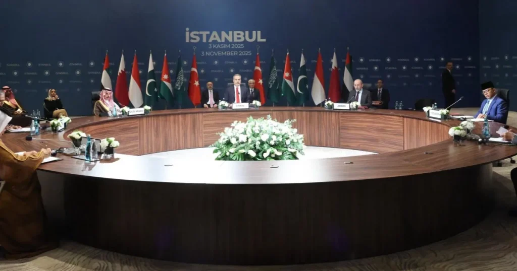 واجتمع وزراء خارجية عدد من الدول الإسلامية في إسطنبول، الاثنين، لبحث وقف إطلاق النار الهش في قطاع غزة، وانضم وزراء خارجية قطر والسعودية والإمارات والأردن وباكستان وإندونيسيا إلى الاجتماع الذي تناول تطورات وقف إطلاق النار والوضع الإنساني في قطاع غزة.