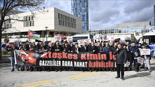 نظّمت “منصة أنقرة للتضامن مع فلسطين”، اليوم السبت، مظاهرة أمام السفارة الأمريكية في العاصمة التركية أنقرة، احتجاجًا على ما وصفته بالانتهاكات الإسرائيلية المتواصلة لاتفاق وقف إطلاق النار في قطاع غزة.