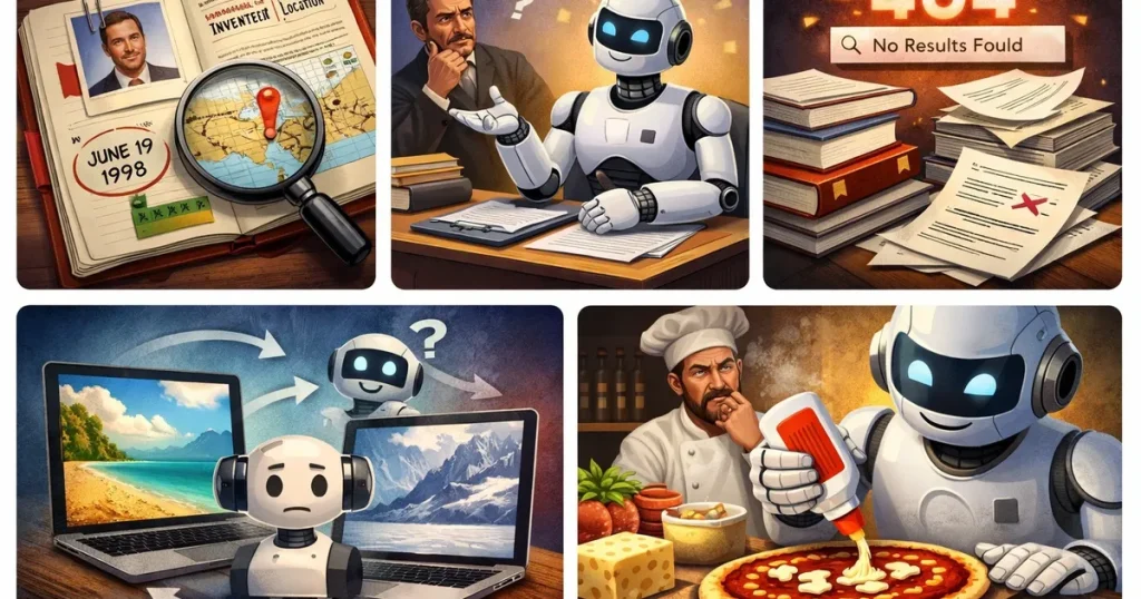ففي واقعة شهيرة، اقترح نموذج ذكاء اصطناعي أن يُضاف الغراء إلى صلصة البيتزا لكي يلتصق الجبن بشكل أفضل، وعلى الرغم من أن هذا قد يبدو منطقياً لغوياً، إلا أنه يخالف أبسط مبادئ الطهي والصحة العامة.