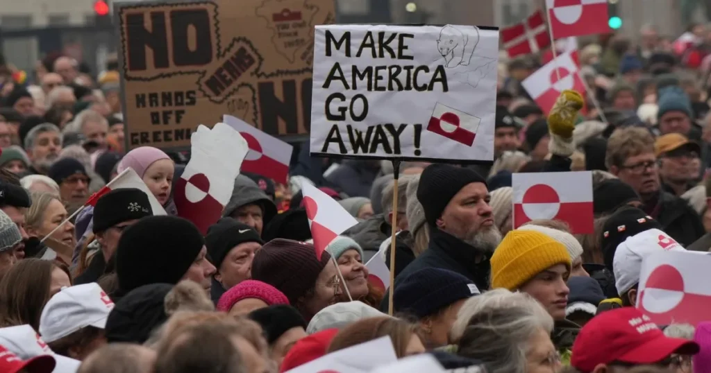 وجاء في البيان أن التهديد بفرض رسوم جمركية “يقوض العلاقات العابرة للأطلسي وينذر بإطلاق دوامة خطيرة من التدهور… ونحن ملتزمون بالحفاظ على سيادتنا”.