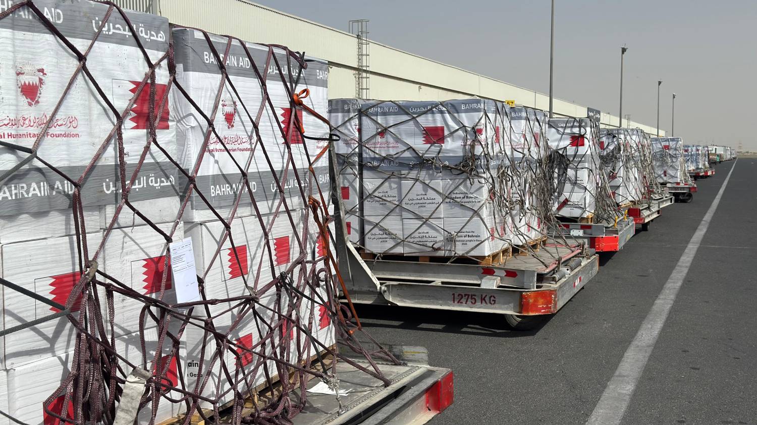 تنفيذًا لأمر حضرة صاحب الجلالة الملك حمد بن عيسى آل خليفة ملك البلاد المعظم، حفظه الله ورعاه، الرئيس الفخري للمؤسسة الملكية للأعمال الإنسانية، وبتوجيهات كريمة من سمو ناصر بن حمد آل خليفة، ممثل جلالة الملك للأعمال الإنسانية وشؤون الشباب، رئيس مجلس أمناء المؤسسة، قامت المؤسسة الملكية للأعمال الإنسانية، بالتعاون مع عملية «الفارس الشهم 3» والهلال الأحمر الإماراتي في دولة الإمارات العربية المتحدة الشقيقة، بإرسال شحنة إغاثية عاجلة تزامنًا مع شهر رمضان المبارك عبر مطار العريش في جمهورية مصر العربية، تمهيدًا لإدخالها إلى قطاع غزة عبر معبر رفح.