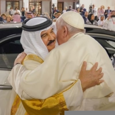وفي نوفمبر من عام 2022، وبدعوة كريمة من حضرة صاحب الجلالة الملك حمد بن عيسى آل خليفة ملك البلاد المعظم حفظه الله ورعاه، قام قداسة البابا فرانسيس بابا الفاتيكان الراحل بزيارة تاريخية إلى مملكة البحرين، التقى خلالها بجلالة الملك المعظم أيده الله وشارك في “منتدى البحرين للحوار: الشرق والغرب من أجل تعايش إنساني” إلى جانب فضيلة الإمام الأكبر الأستاذ الدكتور أحمد الطيب شيخ الأزهر الشريف رئيس مجلس حكماء المسلمين، وعدد من القادة الدينيين من مختلف دول العالم، في خطوة عززت مكانة البحرين كمركز عالمي للحوار والتقارب والتسامح.
