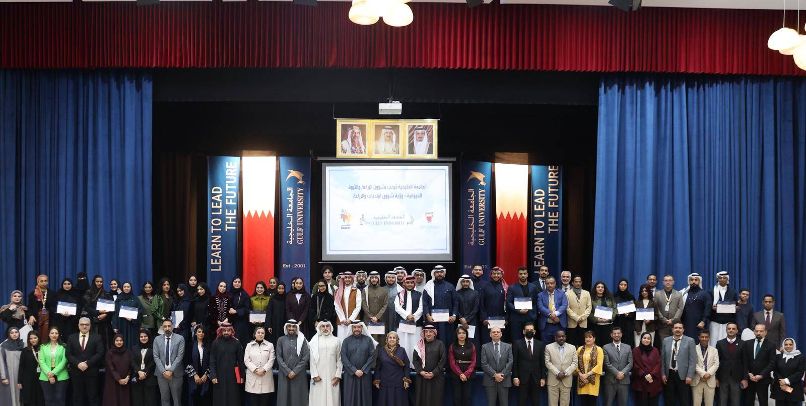 كرمت الجامعة الخليجية المهندس عاصم عبد اللطيف عبد الله، وكيل شؤون الزراعة والثروة الحيوانيّة بوزارة شؤون البلديات والزراعة، تقديرا لجهوده ودعمه، وذلك خلال حفل شهد أيضا قيامه بتكريم كوكبة من طلبة الجامعة المتميزين الذين شاركوا بفاعلية في تنظيم وإنجاح معرض البحرين الدولي (مراعي 2025)، بحضور أولياء امورهم لمشاركتهم فرحة هذا الإنجاز. ويأتي هذا الحفل تقديرا للدور المحوري الذي لعبته الجامعة الخليجية بصفتها راعيا إعلاميا للحملات الترويجية لهذا الحدث الوطني للسنة الثالثة على التوالي، والذي حقق أصداء واسعة ونجاحا باهرا في مختلف أنحاء مملكة البحرين.