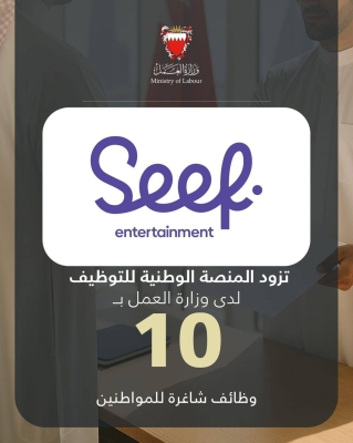 في إطار تنفيذ توجيهات صاحب السمو الملكي الأمير سلمان بن حمد آل خليفة ولي العهد رئيس مجلس الوزراء حفظه الله، بعرض 3 فرص وظيفية لكل باحث عن عمل مسجل لدى وزارة العمل، شركة السيف للترفيه تزود المنصة الوطنية للتوظيف بـ 10 وظائف شاغرة للمواطنين.