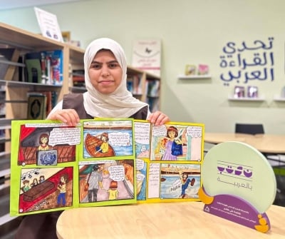والجدير بالذكر أن إحدى قصص الطالبة فاطمة قد فازت بالمركز الثاني في مسابقة “نكتب بالعربية” في نسختها الثانية، عن فئة القصة المصورة.