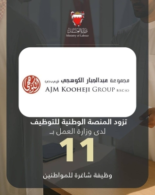 في إطار تنفيذ توجيهات صاحب السمو الملكي الأمير سلمان بن حمد آل خليفة ولي العهد رئيس مجلس الوزراء، بعرض 3 فرص وظيفية لكل باحث عن عمل مسجل لدى وزارة العمل، الكوهجي لبيع إطارات بريجستون يزود المنصة الوطنية للتوظيف بـ 11 وظيفة شاغرة للمواطنين.