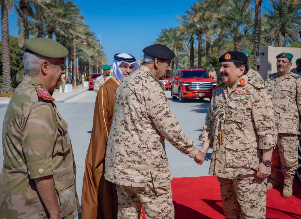 ولدى وصول جلالته كان في الاستقبال صاحب المعالي المشير الركن الشيخ خليفة بن أحمد آل خليفة، القائد العام لقوة دفاع البحرين، والفريق الركن سمو الشيخ ناصر بن حمد آل خليفة، مستشار الأمن الوطني قائد الحرس الملكي، والعميد الركن سمو الشيخ خالد بن حمد آل خليفة، قائد العمليات الخاصة بالحرس الملكي، كما كان في الاستقبال سعادة الفريق الركن عبد الله بن حسن النعيمي، وزير شؤون الدفاع، وسعادة الفريق الركن ذياب بن صقر النعيمي، رئيس هيئة الأركان، وعدد من كبار الضباط.