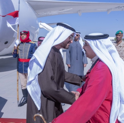 كان حضرة صاحب الجلالة الملك حمد بن عيسى آل خليفة ملك البلاد المعظم حفظه الله ورعاه، في مقدمة مستقبلي أخيه صاحب السمو الشيخ محمد بن زايد آل نهيان رئيس دولة الإمارات العربية المتحدة الشقيقة، لدى وصوله إلى البلاد هذا اليوم في زيارة لمملكة البحرين.