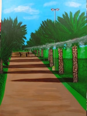 وذلك كمساهمه فنية رسمت بها لوحه فنية تجسد مشروع المرش المائي للمماشي والمنتزهات والذي نفذته بلديه المنطقه الجنوبيه العام 2022 ضمن خططها لتطوير المرافق العامة ، وهو أول نظام مرشات تم تدشينه في البحرين لتبريد الأجواء العامة كان في ممشى مدينة عيسى المطاطي بواسطة البلدية الجنوبية، وهو نظام يعمل برذاذ الماء لتوفير بيئة منعشة للمشاة، ويعتبر مشروعاً رائداً لتطبيق أنظمة التبريد البيئية في المرافق العامة بالبحرين.