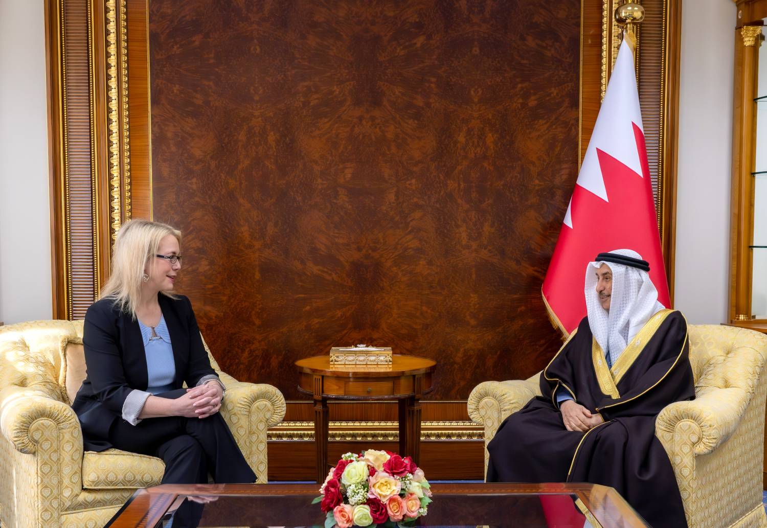 جاء ذلك لدى لقاء في مكتبه بقصر القضيبية صباح اليوم، سعادة السيدة ستيفاني لين هاليت، سفيرة الولايات المتحدة الأمريكية المعتمدة لدى مملكة البحرين، وذلك بمناسبة تعيينها سفيرة لبلادها لدى المملكة.
