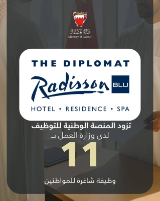 في إطار تنفيذ توجيهات صاحب السمو الملكي الأمير سلمان بن حمد آل خليفة ولي العهد رئيس مجلس الوزراء حفظه الله، بعرض 3 فرص وظيفية لكل باحث عن عمل مسجل لدى وزارة العمل، شركة الفنادق الوطنية (فندق الدبلومات) يزود المنصة الوطنية للتوظيف بـ 11 وظيفة شاغرة للمواطنين.