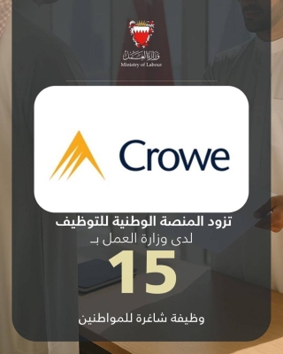 في إطار تنفيذ توجيهات صاحب السمو الملكي الأمير سلمان بن حمد آل خليفة ولي العهد رئيس مجلس الوزراء حفظه الله، بعرض 3 فرص وظيفية لكل باحث عن عمل مسجل لدى وزارة العمل، كرو بي إج شركة تضامن مهنية تزود المنصة الوطنية للتوظيف بـ 15 وظيفة شاغرة للمواطنين.