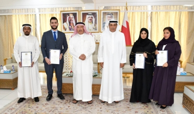 استقبل سلمان بن عيسى بن هندي المناعي محافظ المحرق، بحضور العميد جاسم بن محمد الغتم عدد من منتسبي المحافظة، وذلك بمناسبة حصولهم على شهادة الماجستير في تخصصاتهم الوظيفية من الأكاديمية الملكية للشرطة، وجامعة هيدرسفيلد البريطانية.
