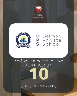 في إطار تنفيذ توجيهات صاحب السمو الملكي الأمير سلمان بن حمد آل خليفة ولي العهد رئيس مجلس الوزراء حفظه الله، بعرض 3 فرص وظيفية لكل باحث عن عمل مسجل لدى وزارة العمل، مدرسة دلمون الخاصة تزود المنصة الوطنية للتوظيف بـ 10 وظائف شاغرة للمواطنين.