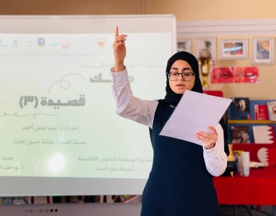 وقالت المشرفة على التنظيم معلمة اللغة العربية الأستاذة زينب جميل أحمد إن المسابقة قد اعتمدت أسلوب اختيار القصائد بالقرعة، ومنح الطالبات المشاركات 10 دقائق للتدرب قبل إلقائها أمام لجنة التحكيم والجمهور، مما أضفى طابعًا من التشويق والتنافس الإبداعي.