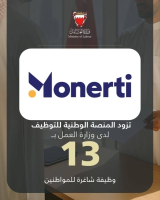 في إطار تنفيذ توجيهات صاحب السمو الملكي الأمير سلمان بن حمد آل خليفة ولي العهد رئيس مجلس الوزراء حفظه الله، بعرض 3 فرص وظيفية لكل باحث عن عمل مسجل لدى وزارة العمل، مونرتي للخدمات تزود المنصة الوطنية للتوظيف بـ 13 وظيفة شاغرة للمواطنين.