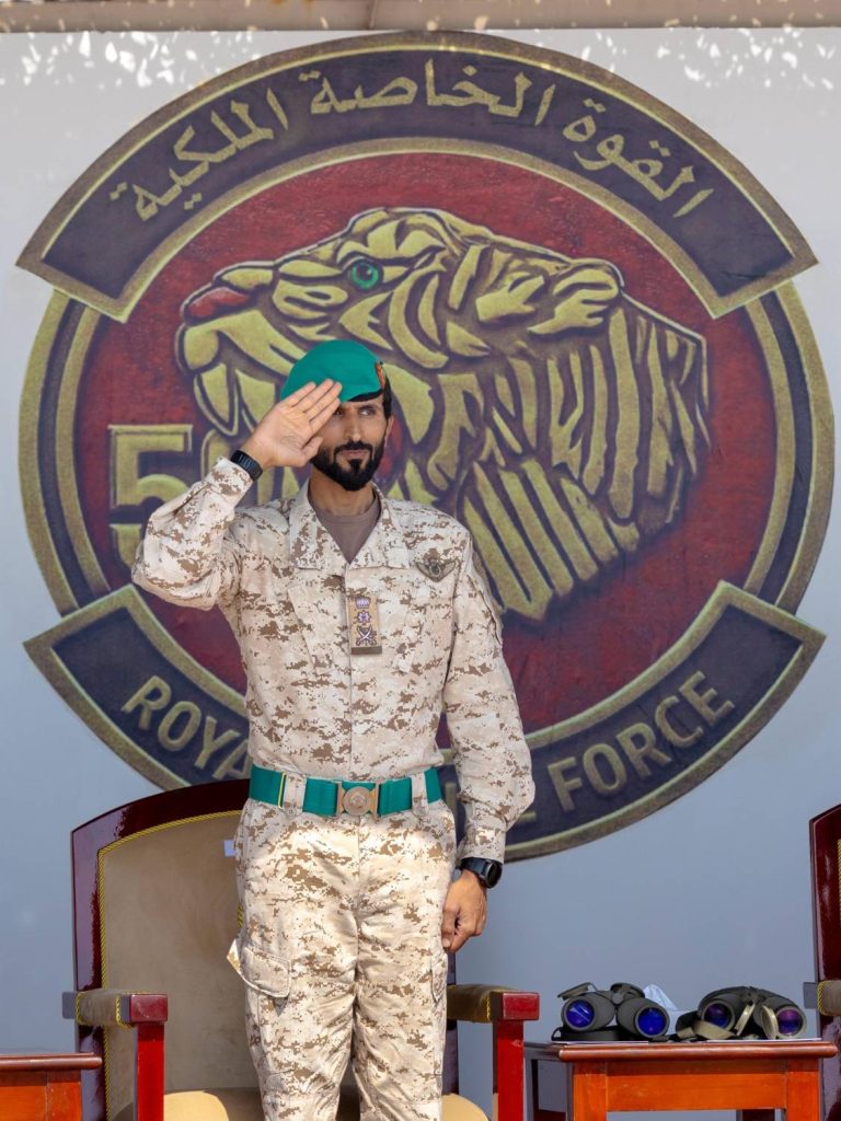 وتفضل سمو مستشار الأمن الوطني قائد الحرس الملكي بتوزيع الهدايا التذكارية على قدامى ضباط وضباط صف القوة الخاصة الملكية، وتوزيع الشهادات على الخريجين، والجوائز التقديرية على المتفوقين في الدورة، حيث أشاد سموه بالمستوى المتقدم من المهارات القتالية والعمليات الميدانية العالية الذي عكسه خريجو الدورة، كما هنأ سموه الخريجين على اجتياز الدورة بنجاح.