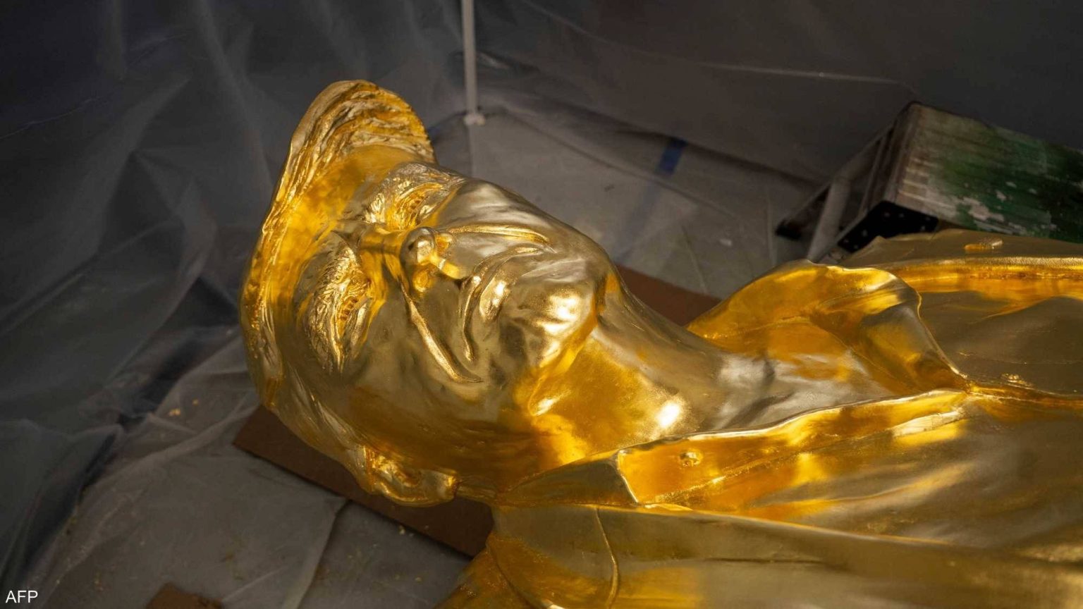ما يزال تمثال الرئيس الأميركي دونالد ترامب المغطى بورق الذهب، ويبلغ ارتفاعه 4,6 متراً، ينتظر تثبيته في مكانه بعد أن حال خلاف على دفعات بالعملات الرقمية دون ذلك.