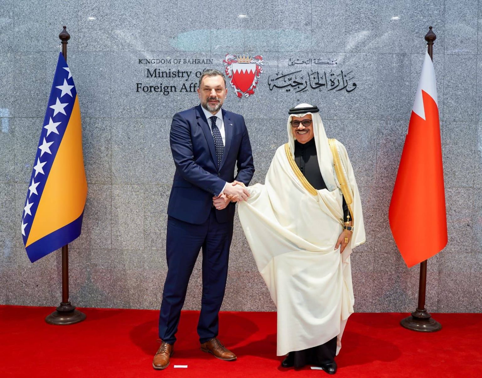 من جانبه أعرب وزير الخارجية في البوسنة والهرسك عن سعادته بزيارة مملكة البحرين، وشكره لحفاوة الاستقبال وكرم الضيافة، مشيدا بمستوى التعاون المشترك بين البلدين وما تحقق من نتائج طيبة في مختلف المجالات، مؤكدا رغبة بلاده في تطوير علاقات التعاون الثنائي مع مملكة البحرين والارتقاء بها إلى مستويات أشمل لما من شأنه خدمة الأهداف والمصالح المشتركة.