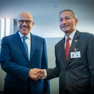 التقى الدكتور عبداللطيف بن راشد الزياني وزير الخارجية، في مقر الأمم المتحدة اليوم، مع الدكتور فيفيان بالاكريشنان، وزير خارجية جمهورية سنغافورة، وذلك على هامش أعمال الدورة الثمانين للجمعية العامة للأمم المتحدة.