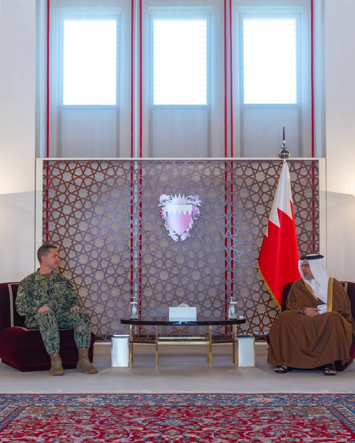 جاء ذلك لدى لقاء سموه حفظه الله اليوم بقصر الرفاع، بحضور الفريق أول معالي الشيخ راشد بن عبدالله آل خليفة وزير الداخلية، وسمو الشيخ عيسى بن سلمان بن حمد آل خليفة وزير ديوان رئيس مجلس الوزراء، وسعادة السيد حمد بن فيصل المالكي وزير شؤون مجلس الوزراء، الفريق أول بحري تشارلز برادفورد كوبر قائد القيادة المركزية الأمريكية والوفد المرافق بمناسبة زيارته للمملكة.