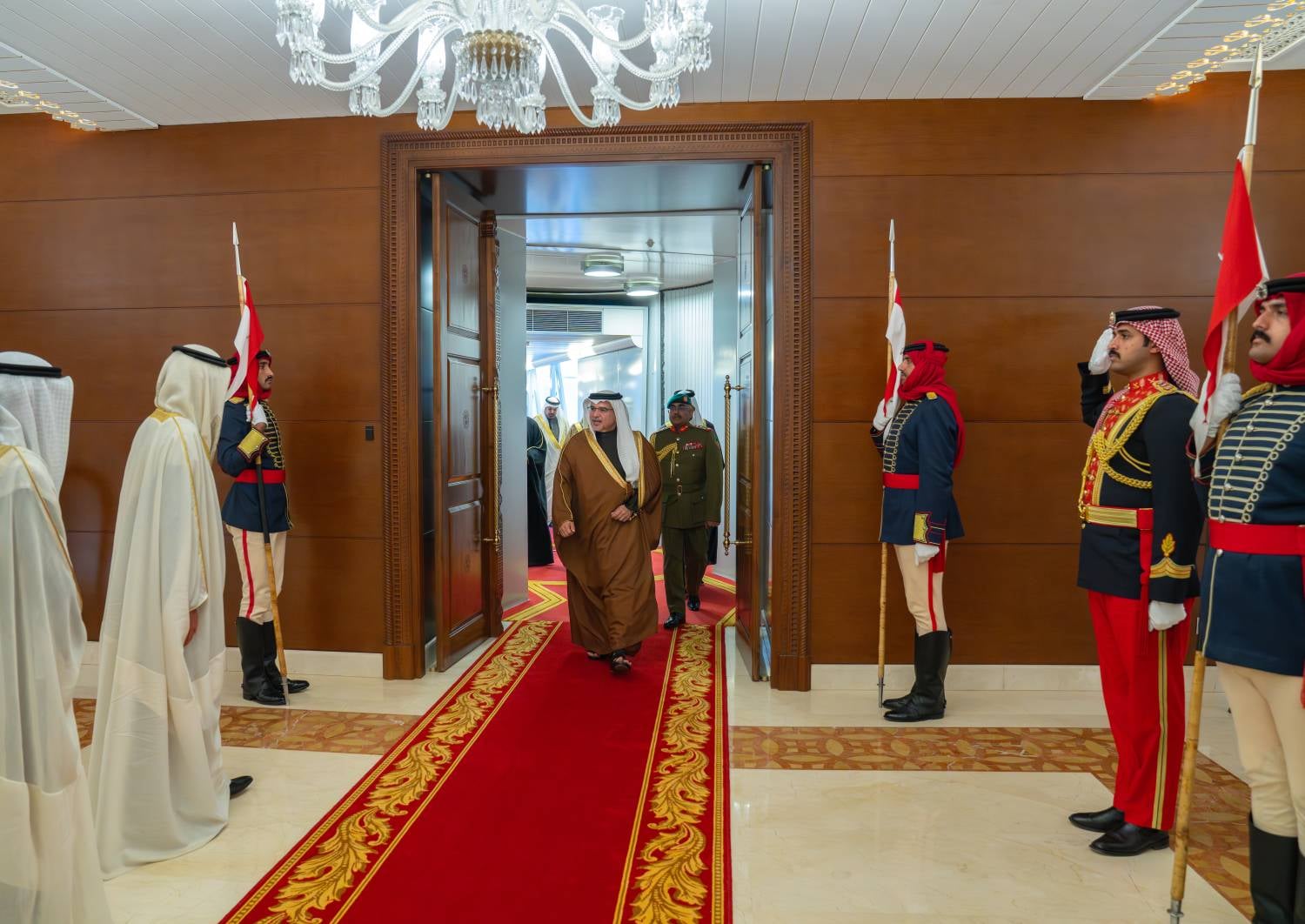 وكان في مقدمة مستقبلي صاحب السمو الملكي ولي العهد رئيس مجلس الوزراء، عددٌ من أصحاب السمو والسعادة من كبار المسؤولين.