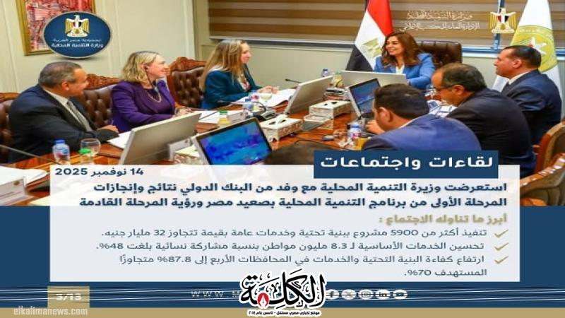 وأعلنت الدكتورة منال عوض وزيرة التنمية المحلية والقائم بأعمال وزير البيئة، عن تنظيم الوزارة بالشراكة مع مجموعة البنك الدولي لمؤتمر (إصلاح وتمكين الإدارة المحلية الدروس المستفادة من تجربة برنامج التنمية المحلية بصعيد مصر) تحت رعاية السيد الدكتور مصطفي مدبولي رئيس مجلس الوزراء في ٢٧ نوفمبر الجاري بحضور عدد من السادة الوزراء والمحافظين وقيادات البنك الدولي وشركاء التنمية والخبراء الدوليين ورؤساء عدد من الهيئات الحكومية المعنية، جاء ذلك خلال لقاء وزيرة التنمية المحلية مع وفد من البنك الدولي بمقر الوزارة بالعاصمة الجديدة.