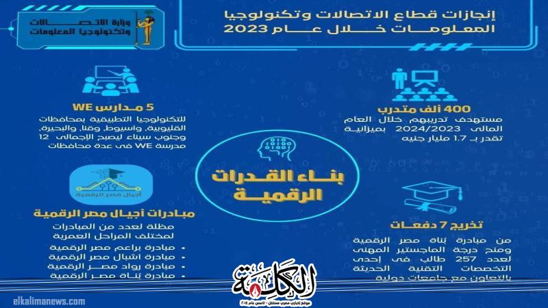 وفيما يلى أبرز ما تم إنجازه فى قطاع الاتصالات وتكنولوجيا المعلومات خلال عام 2023: