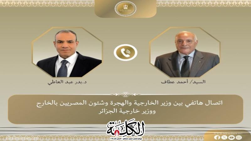 جرى اتصال هاتفي بين د. بدر عبد العاطي وزير الخارجية والهجرة وشئون المصريين بالخارج، والسيد أحمد عطاف وزير الشؤون الخارجية والجالية الوطنية بالخارج بالجمهورية الجزائرية الديمقراطية الشعبية الشقيقة، يوم السبت ١٨ أكتوبر، حيث تناول الاتصال سبل تعزيز التعاون الثنائي وتبادل الرؤى حول القضايا الإقليمية ذات الاهتمام المشترك.