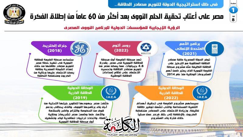 وفي هذا الصدد نشر المركز الإعلامي لمجلس الوزراء تقريراً تضمن إنفوجرافات بعنوان “مصر على أعتاب تحقيق الحلم النووي بعد أكثر من 60 عاماً من إطلاق الفكرة” في ظل استراتيجية الدولة لتنويع مصادر الطاقة.